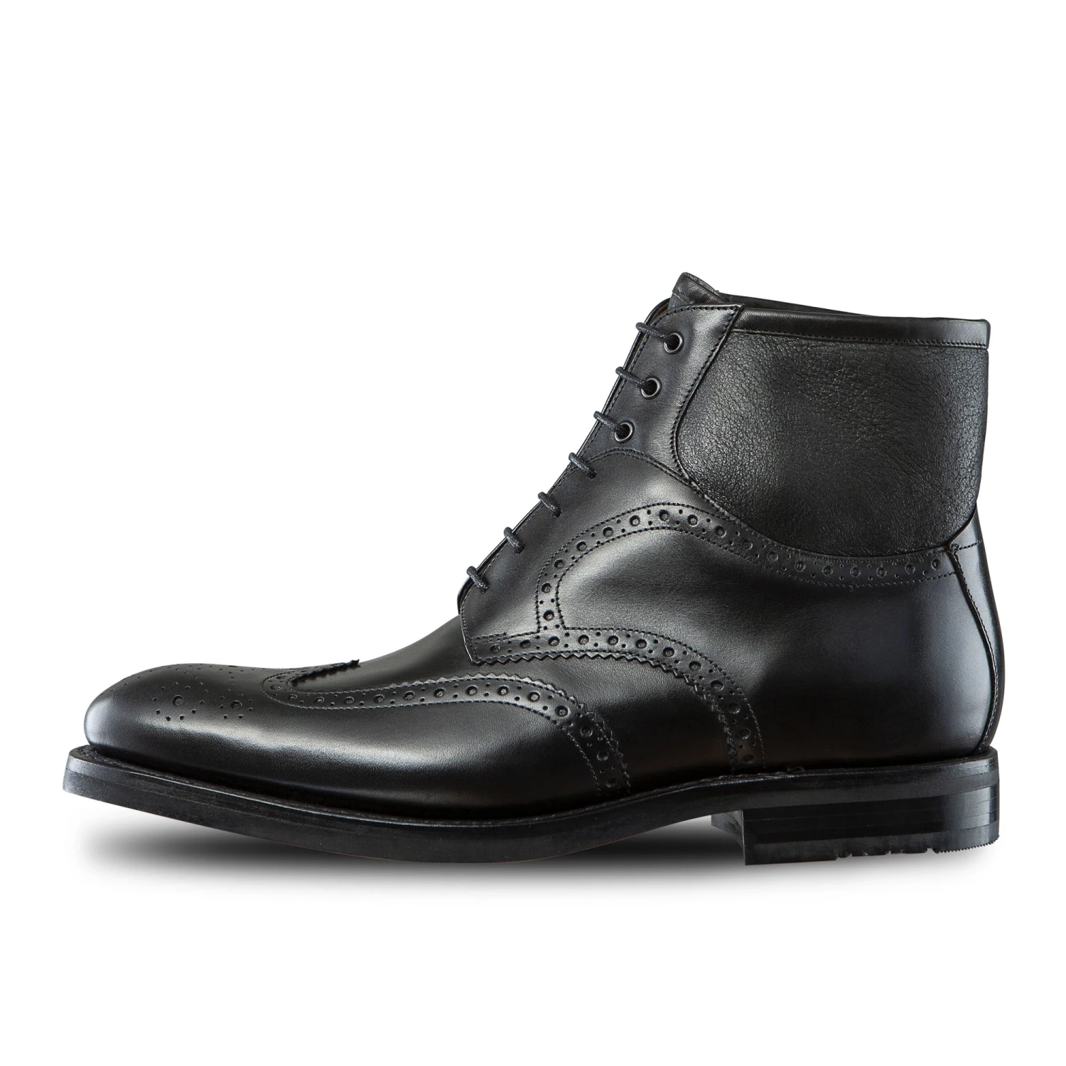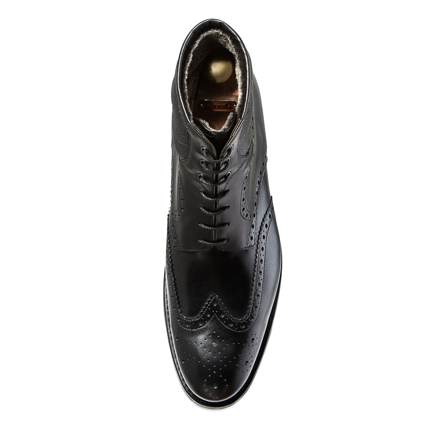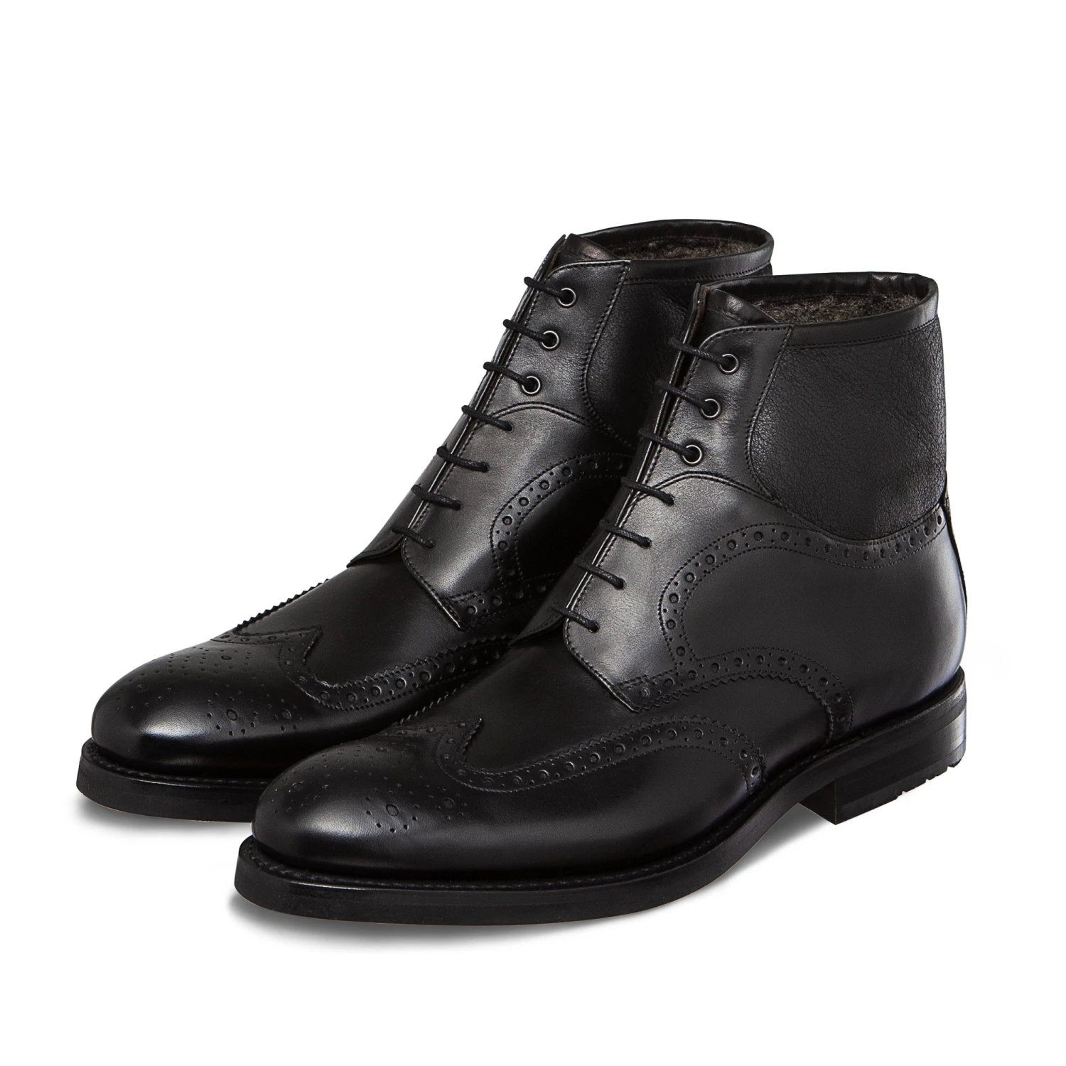Cette bottine de style brogue est idéale pour l’hiver avec ses empiècements de fourrure d’agneau aux chevilles.
