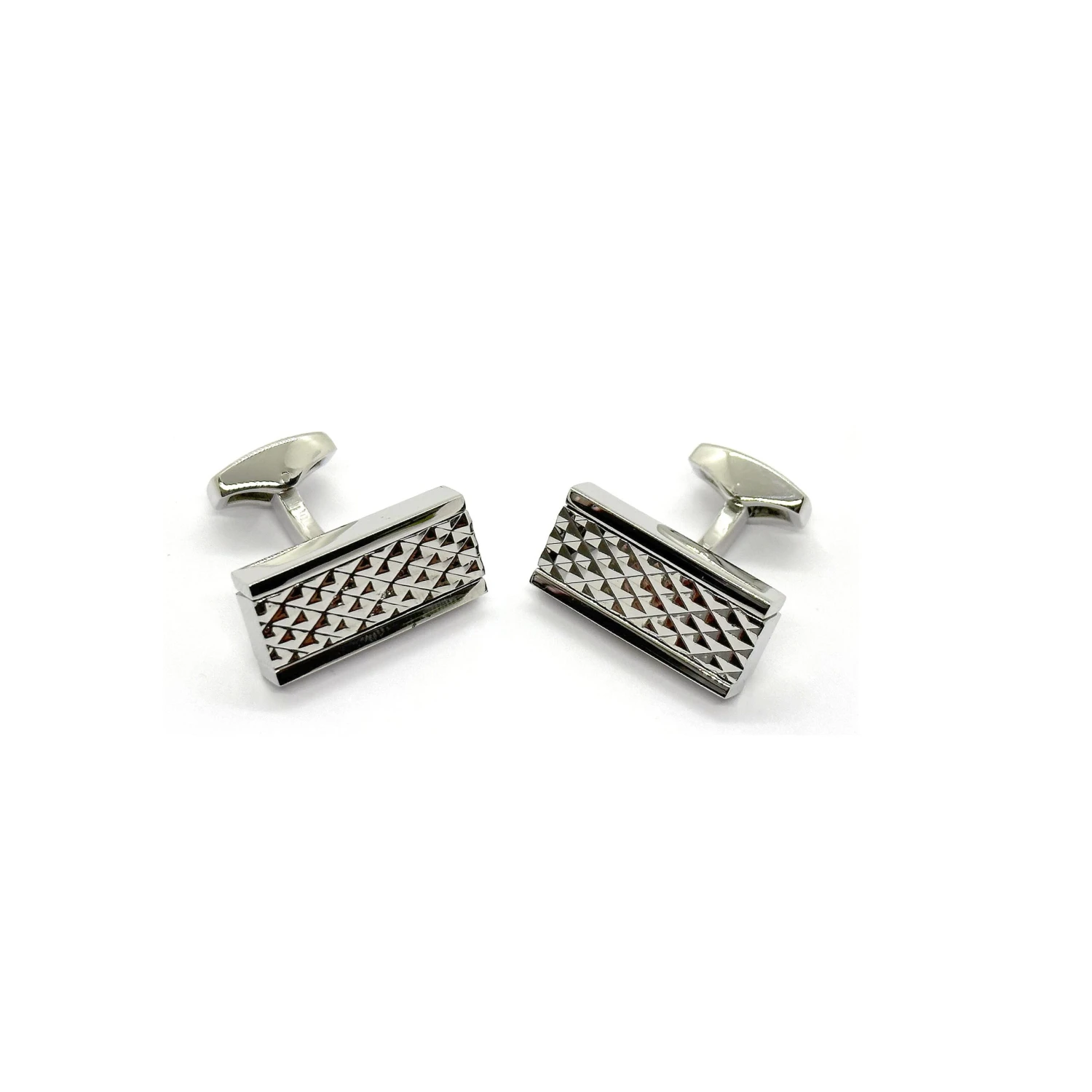 Boutons de manchette rectangulaires avec un motif diamantine en relief.