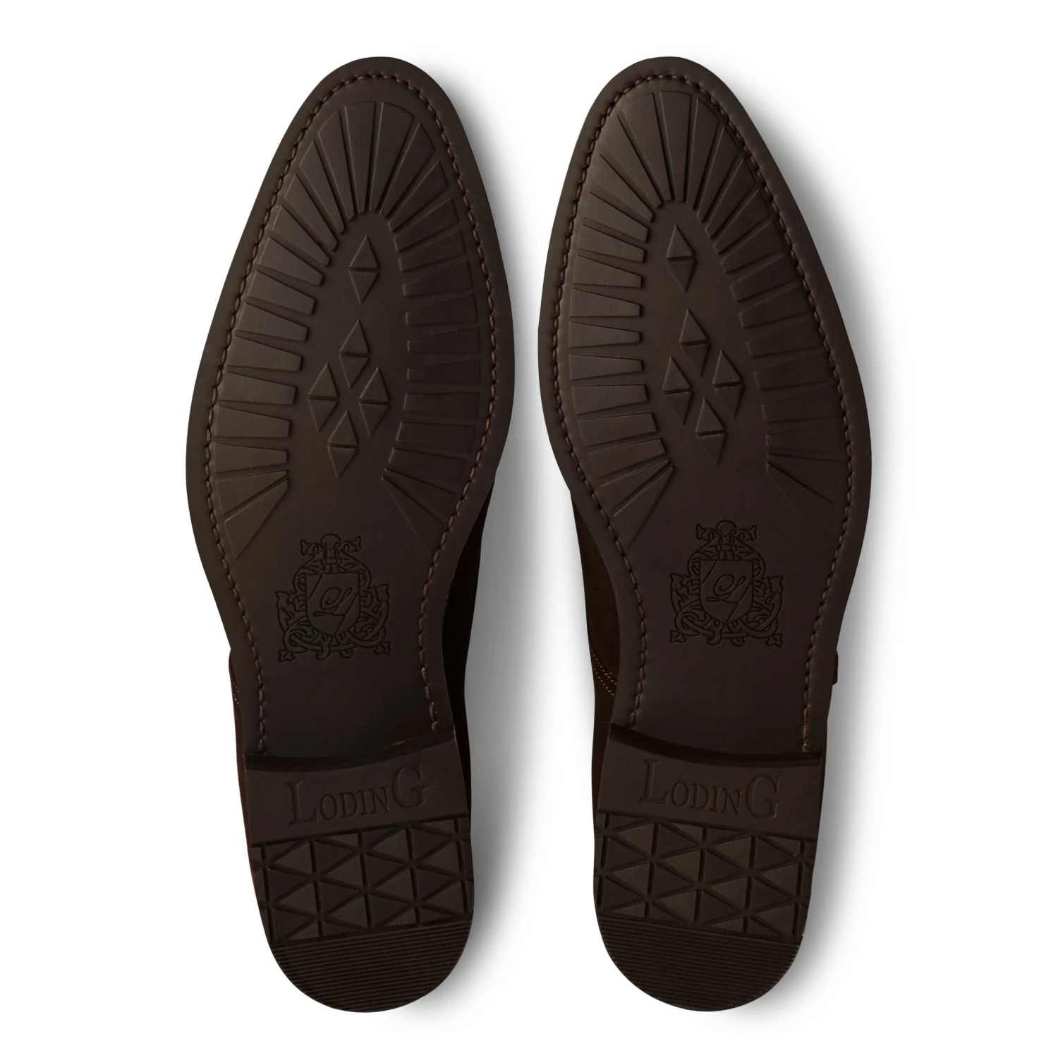 La fameuse doubles boucles de LodinG se pare ici d’un beau veau velours marron.