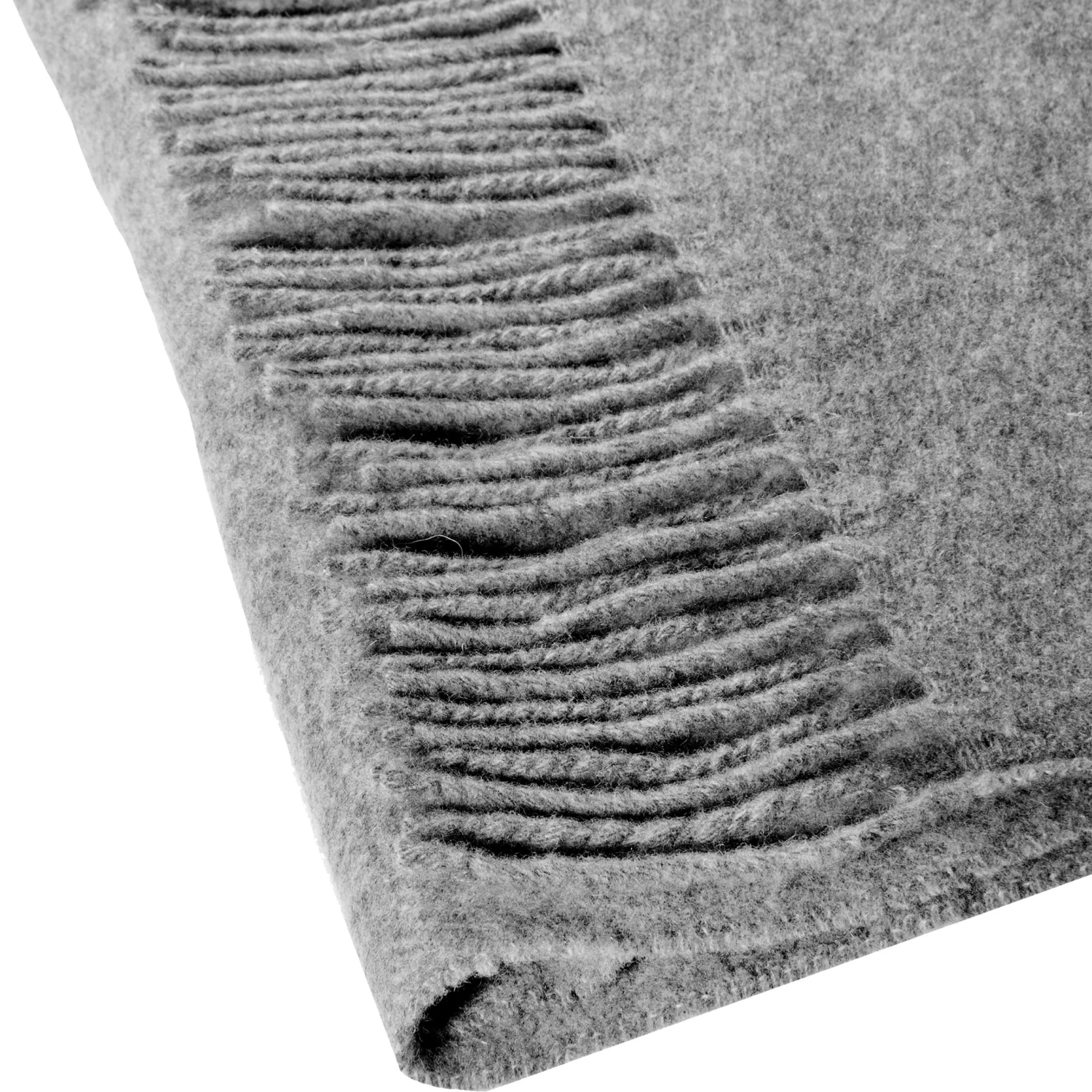 Cette écharpe en feutre est d’une douceur incomparable et présente des franges.